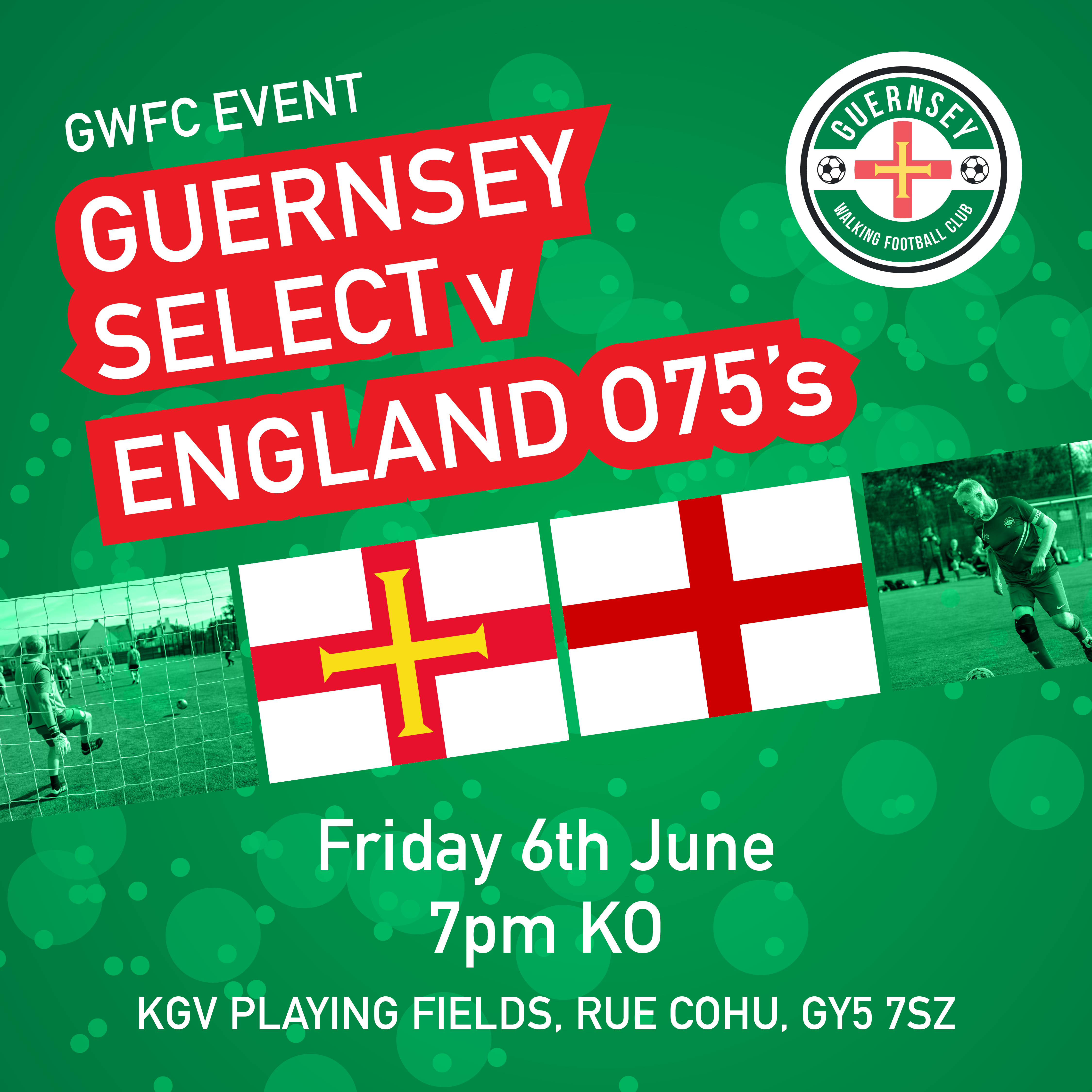 Join us for a thrilling evening of walking football as Guernsey Select takes on the England Over 75s in a round-robin tournament! 🇬🇬🇬🇧